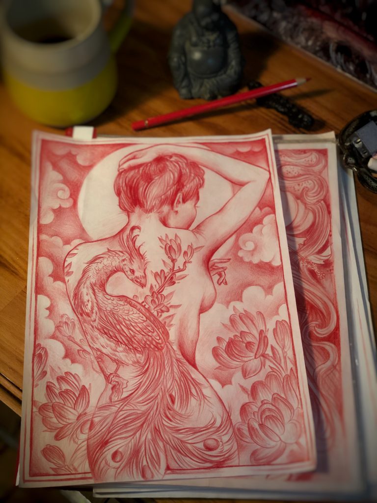 I am so grateful to have been given time to immerse myself into art this year. I have been developing creatively but sometimes it feels frustratingly slow. This year I have broken through a personal barrier and I am overjoyed with the progress I have made. Sketching almost daily and oil painting regularly, I have finished many pieces that have been stuck in the planning stage for years. After being able to immerse myself in my art during time away from tattooing, I’m excited where that will take me in the coming years. So thank you 2020 for that time.