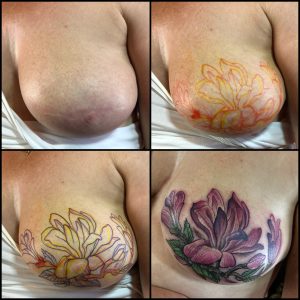 I am always very honoured to be asked to do such a special tattoo for my clients. After a mastectomy, it is very often their first and only tattoo and one that celebrates the end of a traumatic journey. I have tattooed over mastectomy scars many times and each time I am touched and honoured to have been chosen for such a sensitive project. Bringing closure to a traumatic journey, it is the final step in healing. Thank you to my very special clients for allowing me to share their intimate photos so that it may help others. You are truly inspiring people.