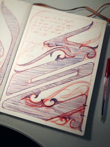 I finished the year with my 4th annual tattoo giveaway, which went to Naomi. She gave me the freedom to push myself and the design into a new area. By avoiding the more obvious, but equally striking solution of symmetry, we opted for a balanced but different design. One of asymmetry.