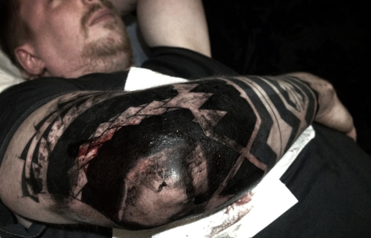 It was a tough session for Gareth especially when after 5 hours of tattooing we had the elbow (hellbow) left to colour.