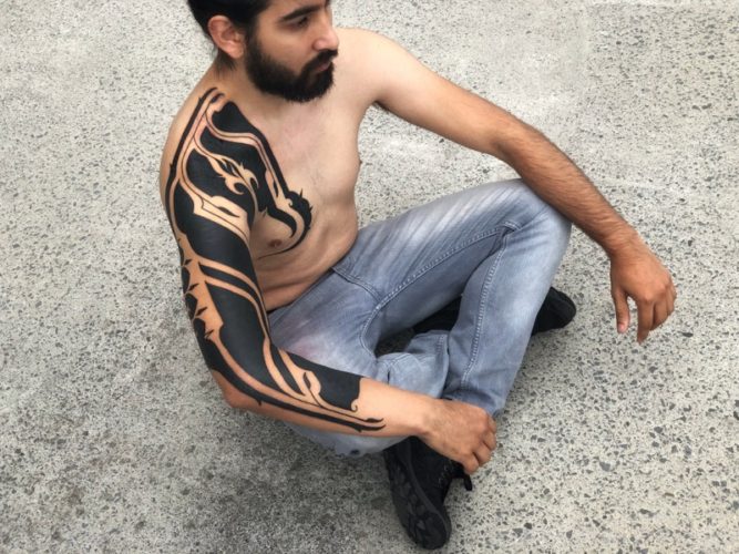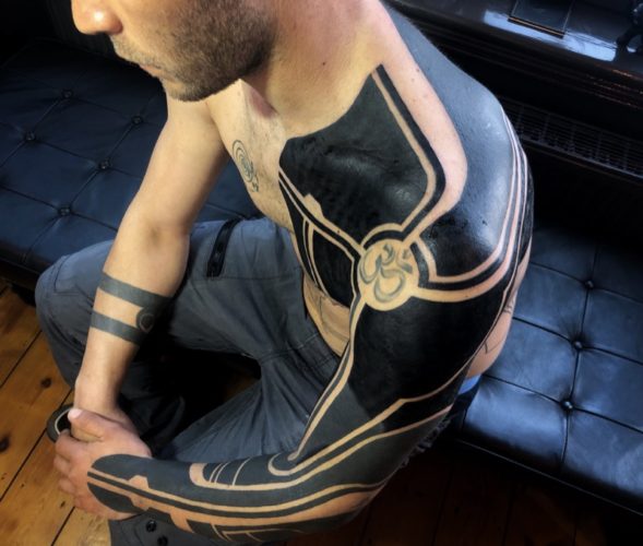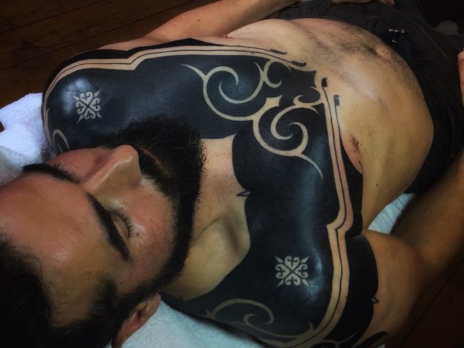 Below is an excerpt from Richard’s account of getting his Blackwork bodysuit from me. A project spanning over years, it’s been illuminating to see Richard continue to grow and evolve.